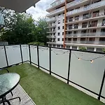 Die Unterkunft verfügt über einen Balkon sowie schallisolierte Fenster und bietet eine Klimaanlage. Im Apartment gibt es auch mediale Annehmlichkeiten wie WLAN und einen Flachbildfernseher mit Satellitenkanälen, damit Gäste in Ruhe entspannen können. Es bietet außerdem 1 Bad, wo es eine behindertengerechte Dusche und eine getrennte Toilette gibt. Des Weiterem gibt es Handtücher im Badezimmer.